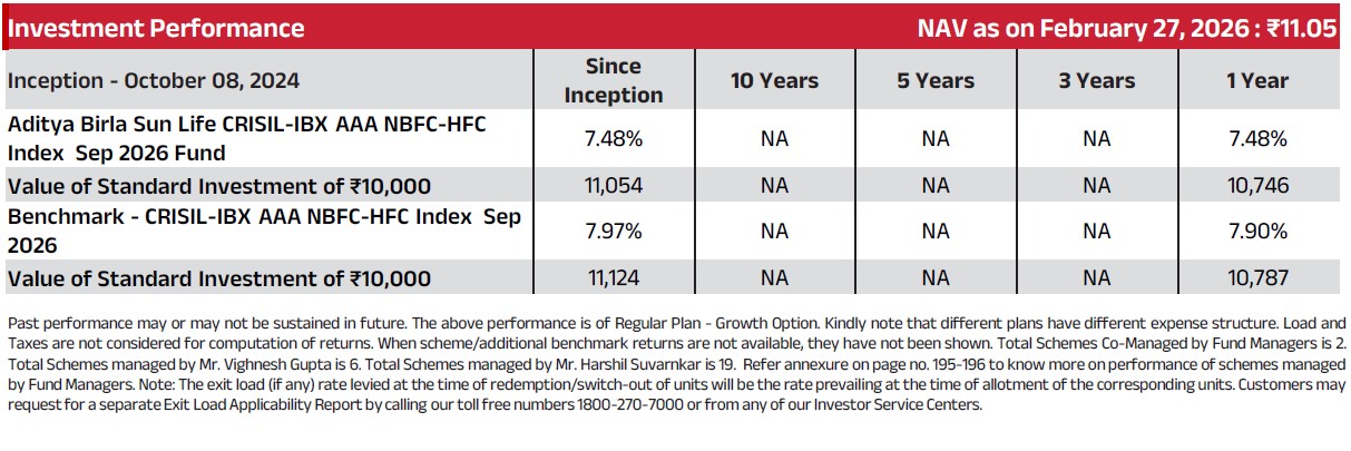 | Benchmark:CRISIL-IBX AAA NBFC-HFC Index Sep 2026 | |