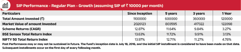 For SIP calculations above, the data assumes the investment of ₹ 10000/- on 1st day of every month or the subsequent working