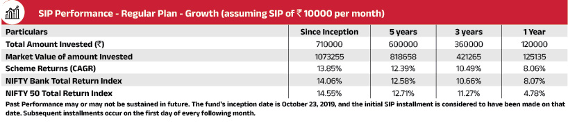 For SIP calculations above, the data assumes the investment of ₹ 10000/- on 1st day of every month or the subsequent working