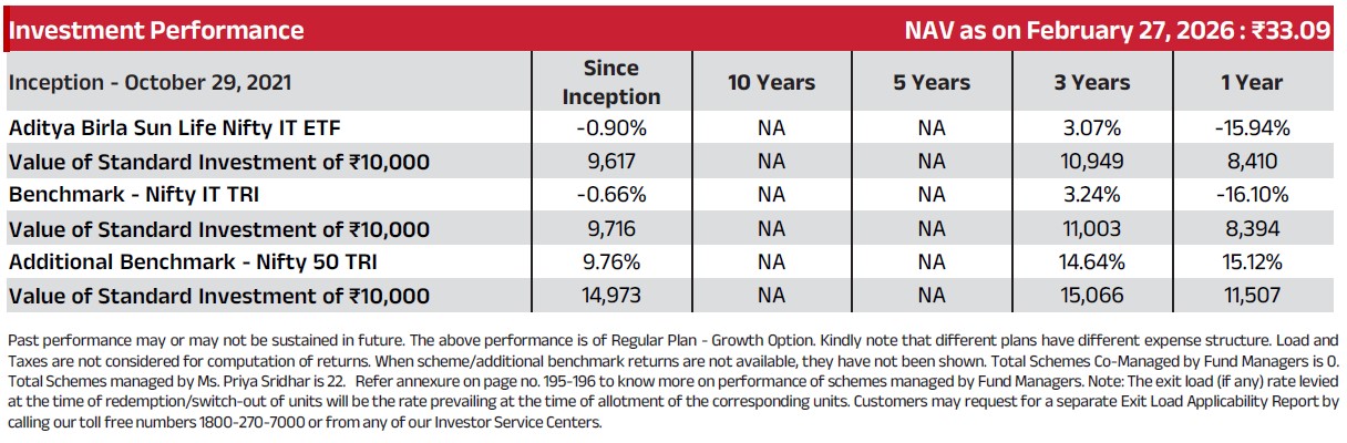 | Aditya Birla Sun Life Nifty IT ETF An open ended exchange traded fund tracking Nifty IT TRI |