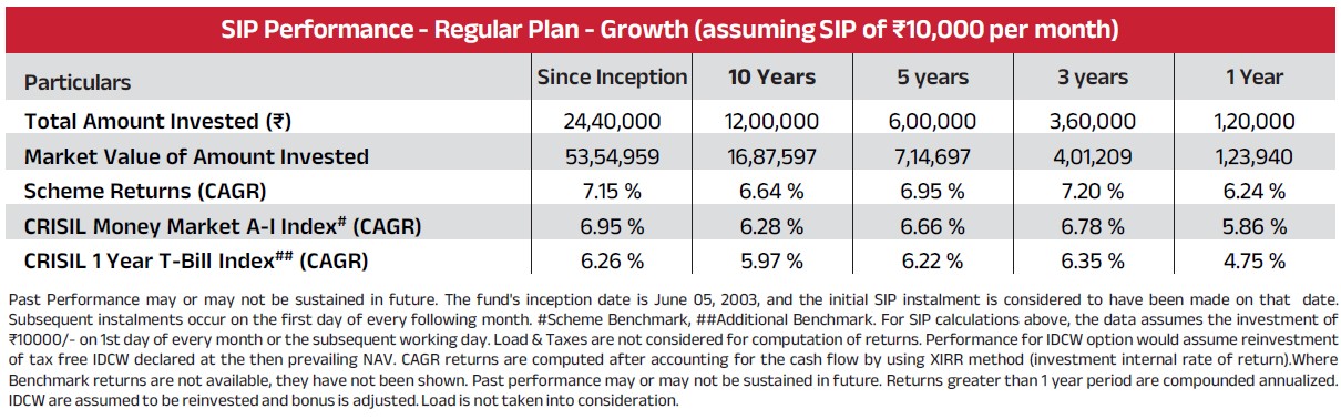 | Benchmark: CRISIL Money Market A-I Index | |