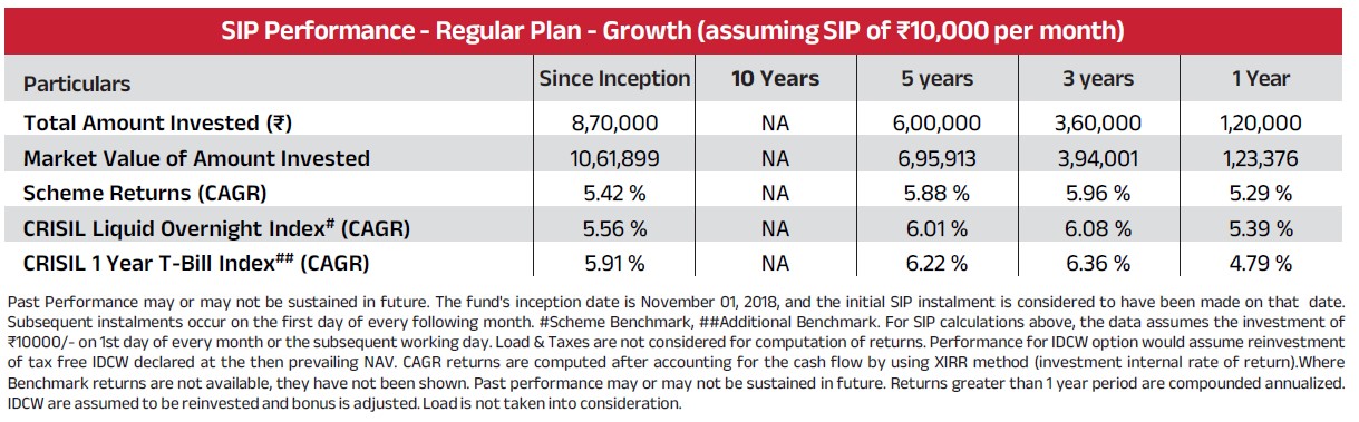 | Benchmark: CRISIL Liquid Overnight Index | |