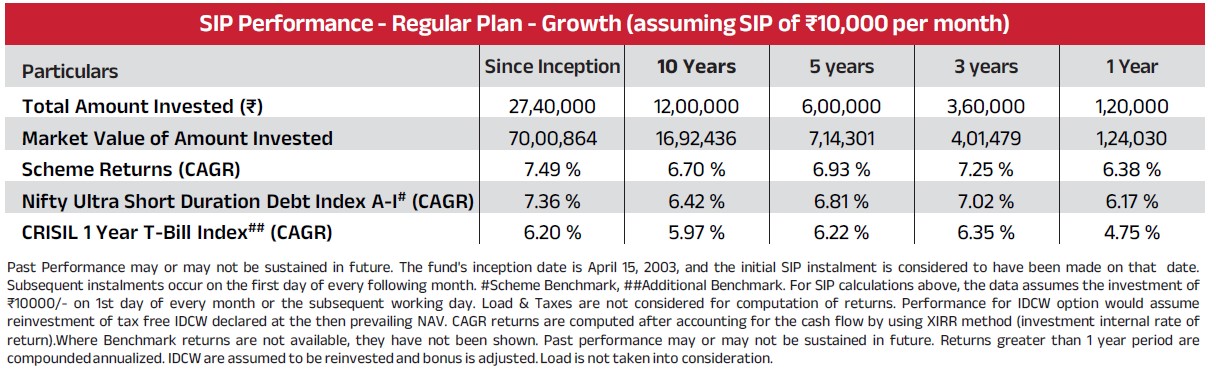 | Benchmark: Nifty Ultra Short Duration Debt Index A-I | |
