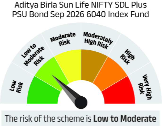 Aditya Birla Sun Life Nifty SDL Plus PSU Bond Sep 2026 60:40 Index Fund is an open ended scheme tracking the Nifty SDL Plus PSU Bond Sep 2026 60:40 Index. A relatively high interest rate risk and relatively low credit risk.