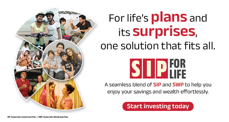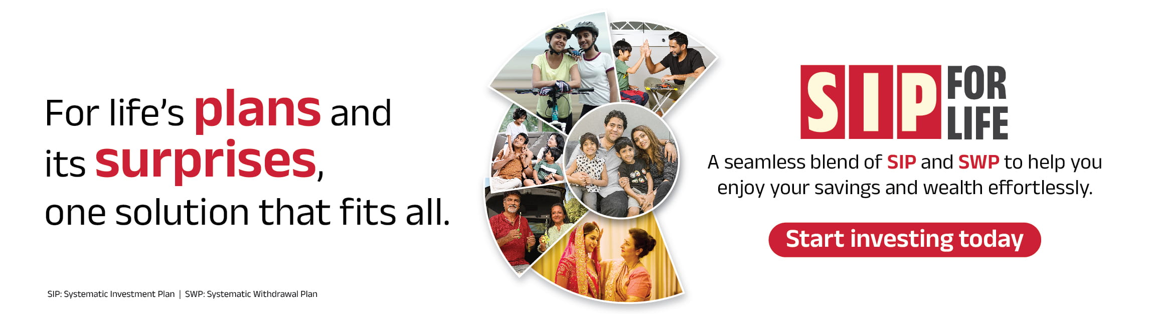 SIP for LIFE is an optional facility offered by the AMC and does not in any way give guarantee, assurance, promise or indication of the performance of any of the schemes of the Fund or provide any guarantee of withdrawals through SWP mode or the returns that can be generated under this facility. The SWP for amount decided by the unit holders will be processed up to 31 Dec 2099 or till the time units are available in the underlying scheme in the unitholders folio.